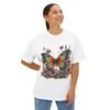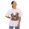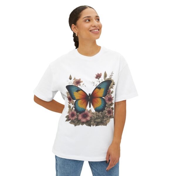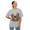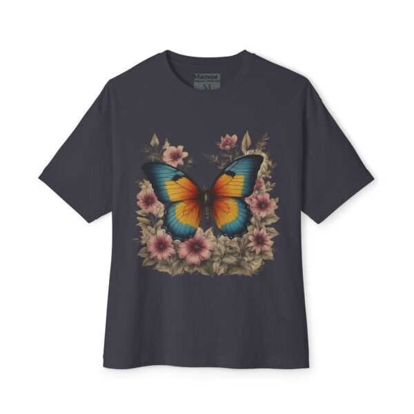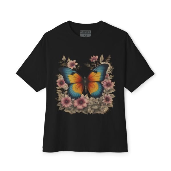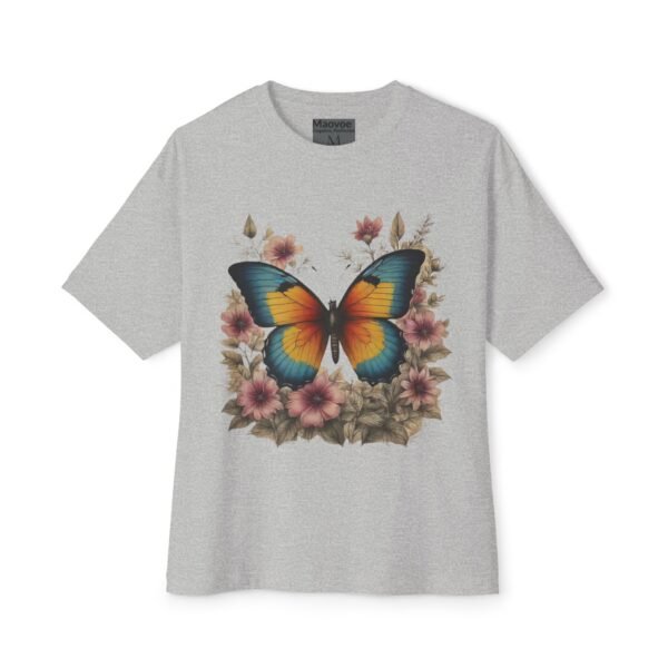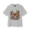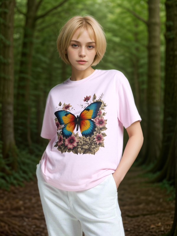 Step into a storybook garden with the Enchanted Butterfly Floral Tee. A vivid blue-orange butterfly rests among blush flowers and forest foliage, captured in high-contrast color on our relaxed, oversized boxy shirt. Crafted for nature lovers and bold-style seekers alike, this tee transforms casual outfits into eye-catching statements—perfect for picnics, festivals, or sunny weekend strolls.