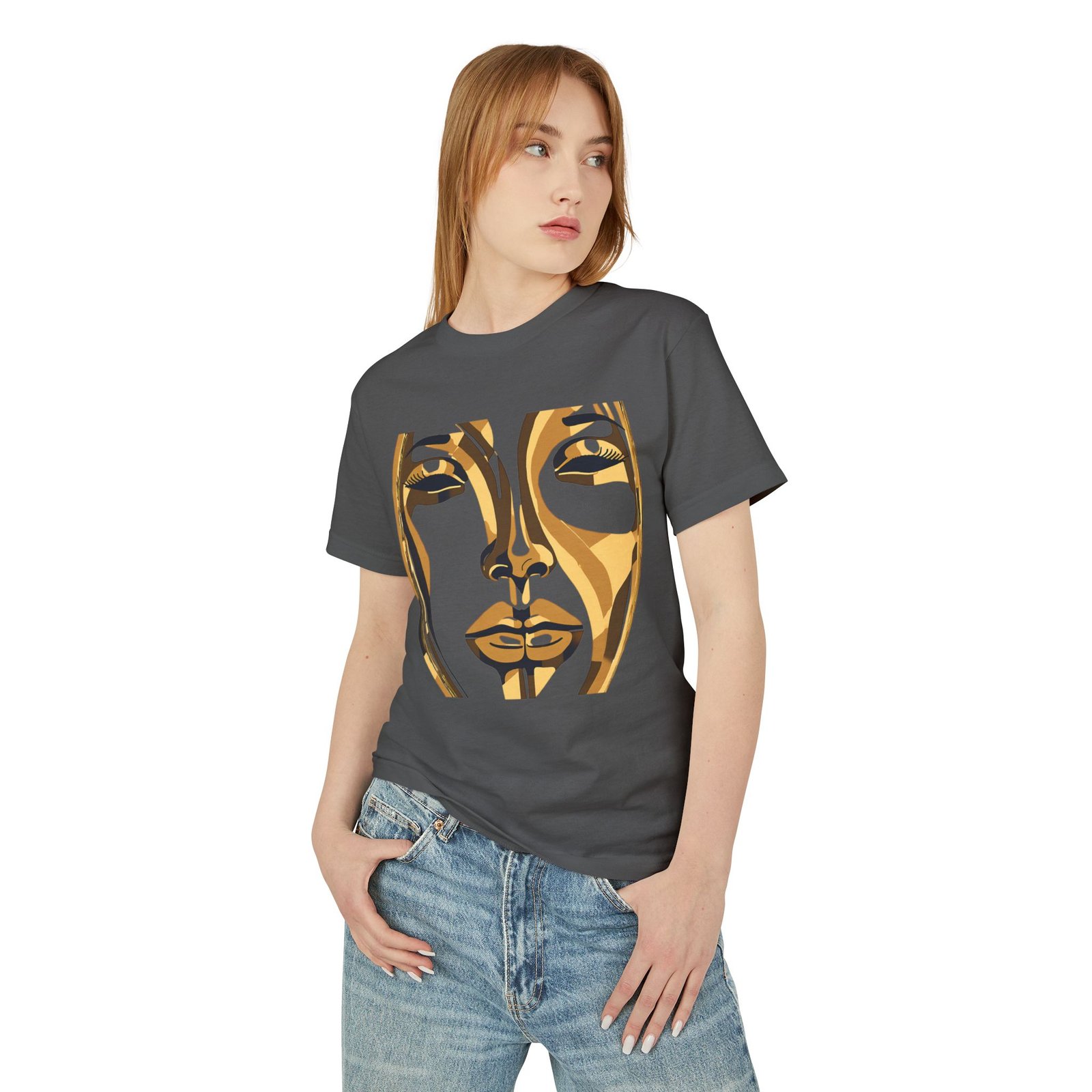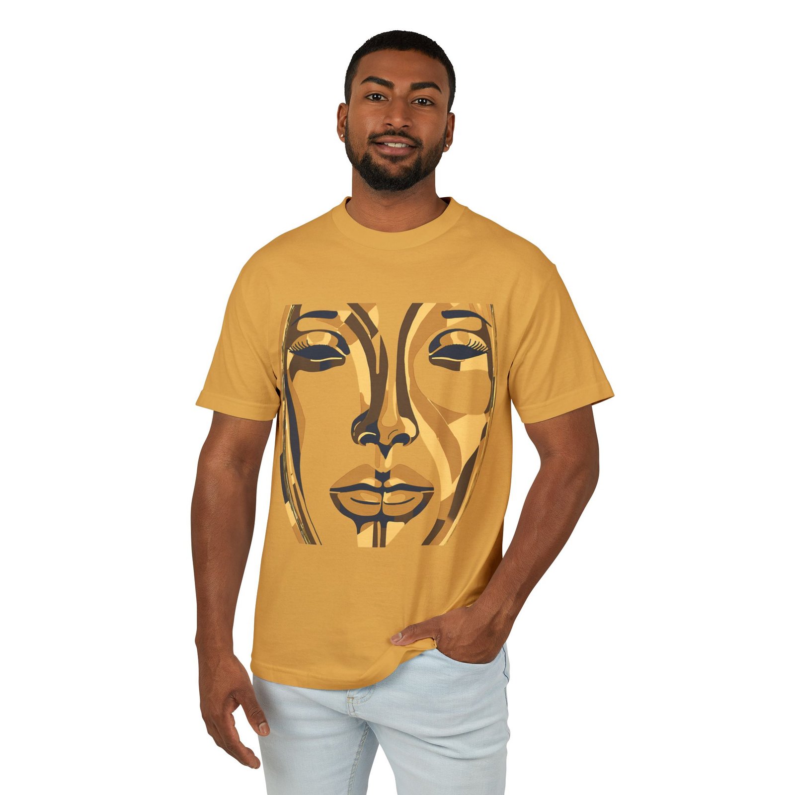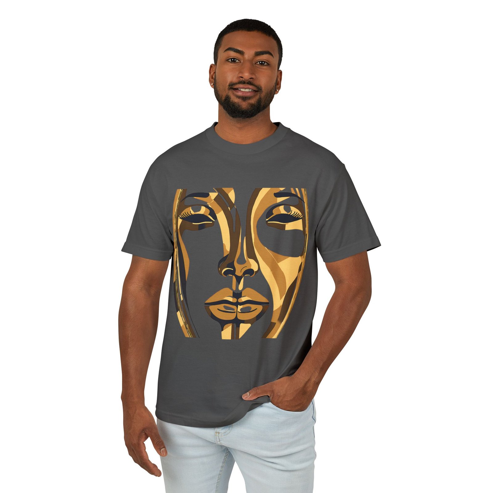 Be the first to review “Golden Abstract Face T-Shirt – Sophisticated Style Unisex Garment-Dyed Heavyweight Cotton Tee”