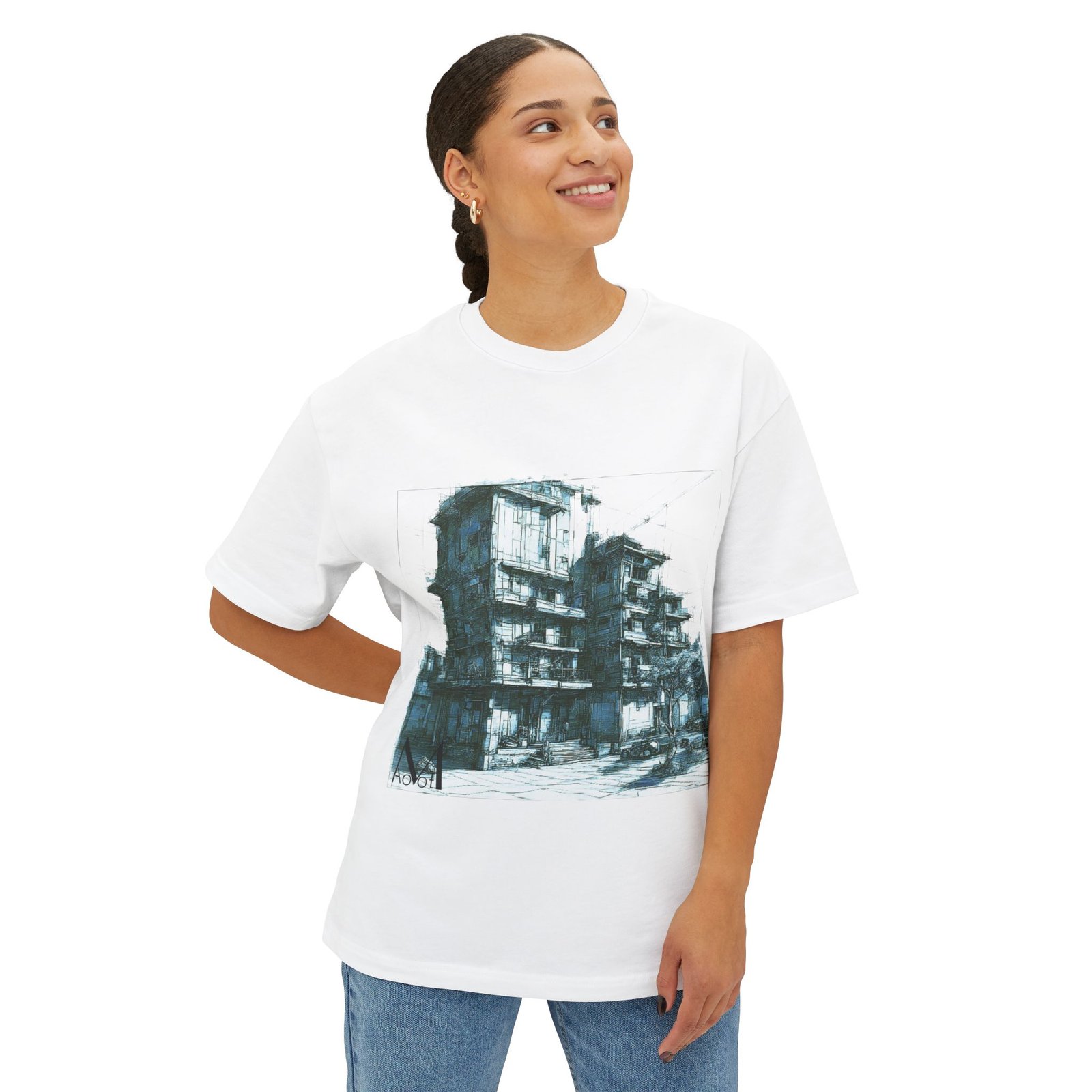 Discover understated elegance with the Maovoe Minimal Building Tee, featuring a hand-sketched architectural design printed on a relaxed, oversized unisex T-shirt. Perfect for creatives, designers, and minimalists, this piece blends structure and streetwear with effortless comfort.