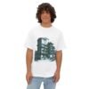 Crafted from 100% cotton, this medium-weight tee offers a breathable feel, dropped shoulders, and durable construction — making it ideal for both everyday wear and laid-back weekends. The printed design evokes the lines of modern cityscapes and contemporary sketch art, making it an eye-catching addition to any wardrobe.
