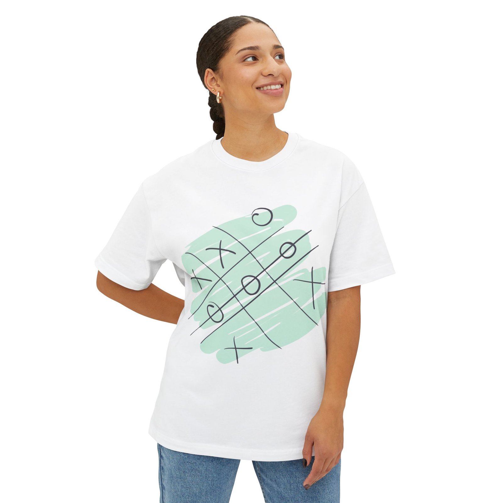 Introducing the ultimate Unisex Oversized Boxy Tee featuring a playful and modern Tic Tac Toe design, perfect for laid-back weekends or casual hangouts. This tee blends abstract art with nostalgic game vibes, making it a standout staple in any creative wardrobe.