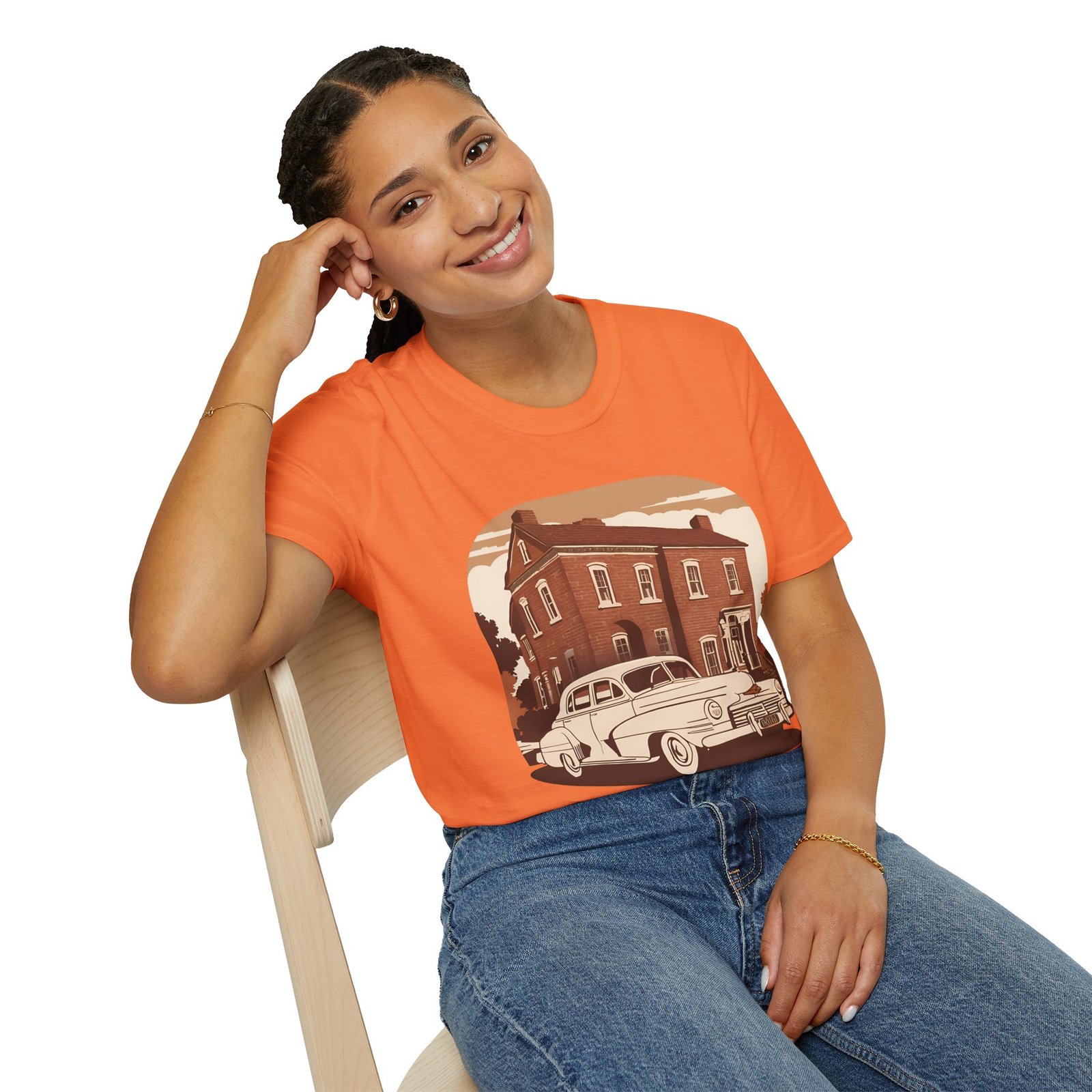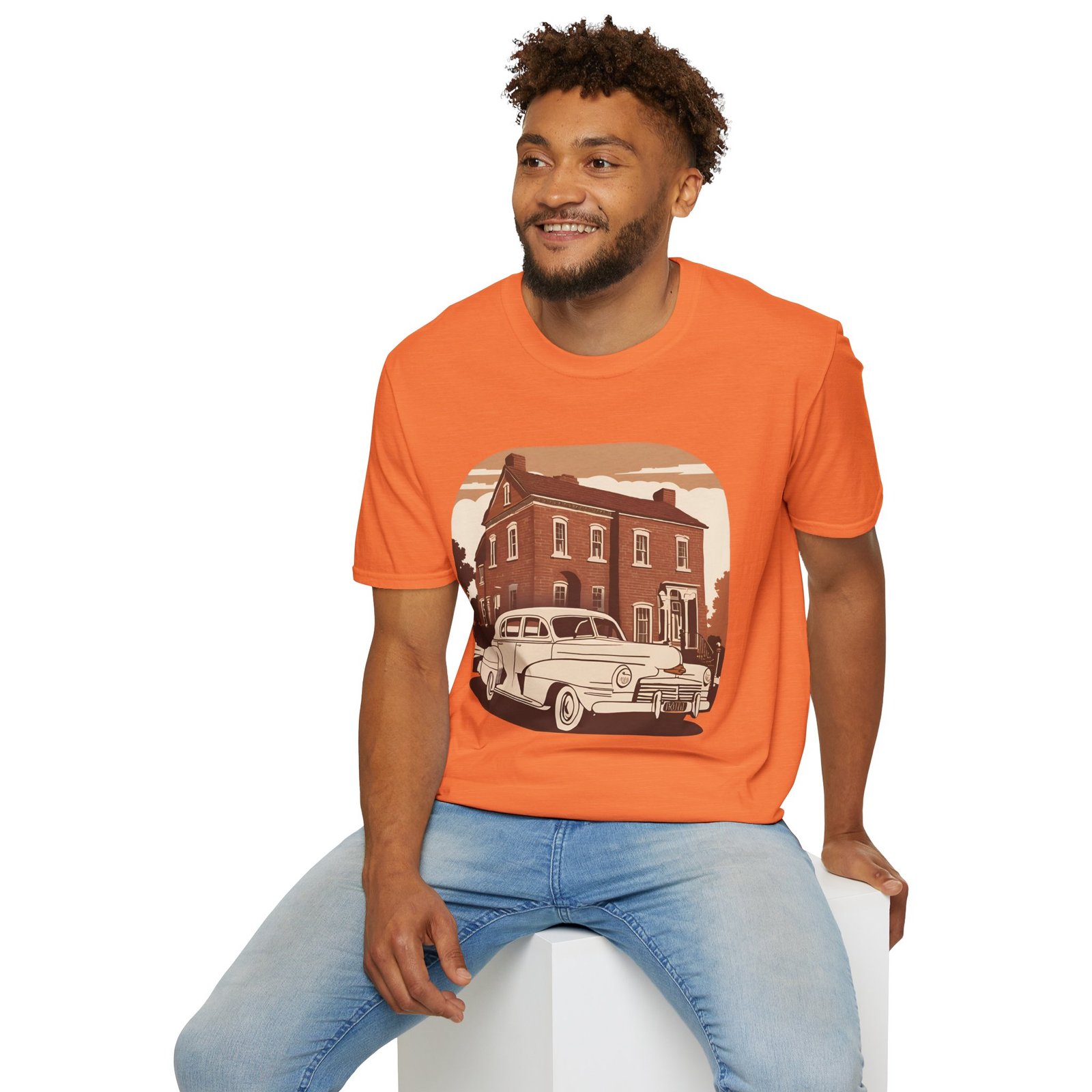 Step into the past with our Timeless Classic Vintage Tee, a must-have for vintage lovers and car enthusiasts. This unisex T-shirt showcases a stunning sepia-toned illustration of a classic car parked in front of a charming old house, making it the perfect choice for those who appreciate retro vibes and timeless style.